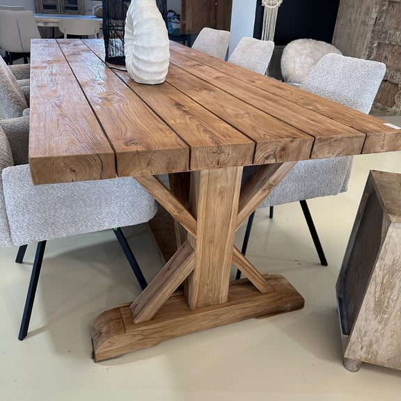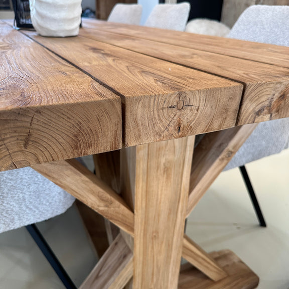 Expertly crafted from high-quality teak wood, this dining table measures 240cm and is perfect for outdoor use. Its durable construction ensures longevity, while the natural beauty of teak adds a touch of elegance to any outdoor space. Enjoy outdoor dining in style with this stunning and sturdy teak dining table.